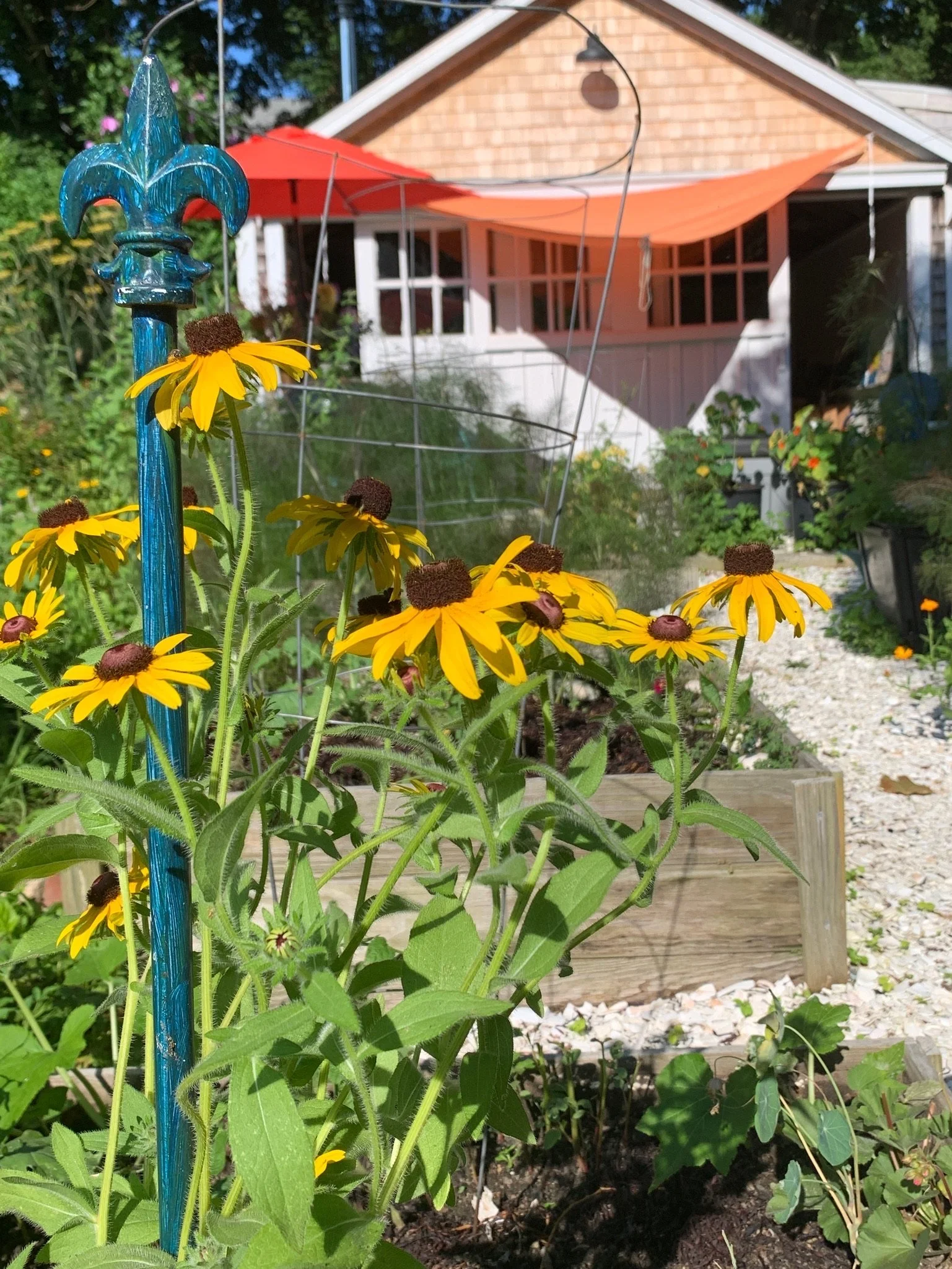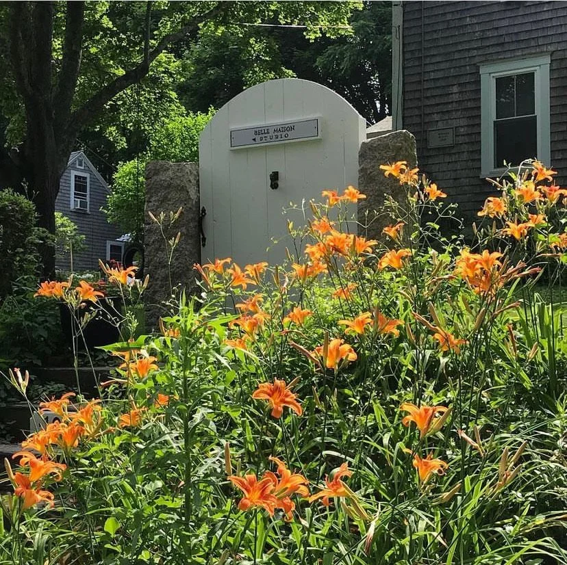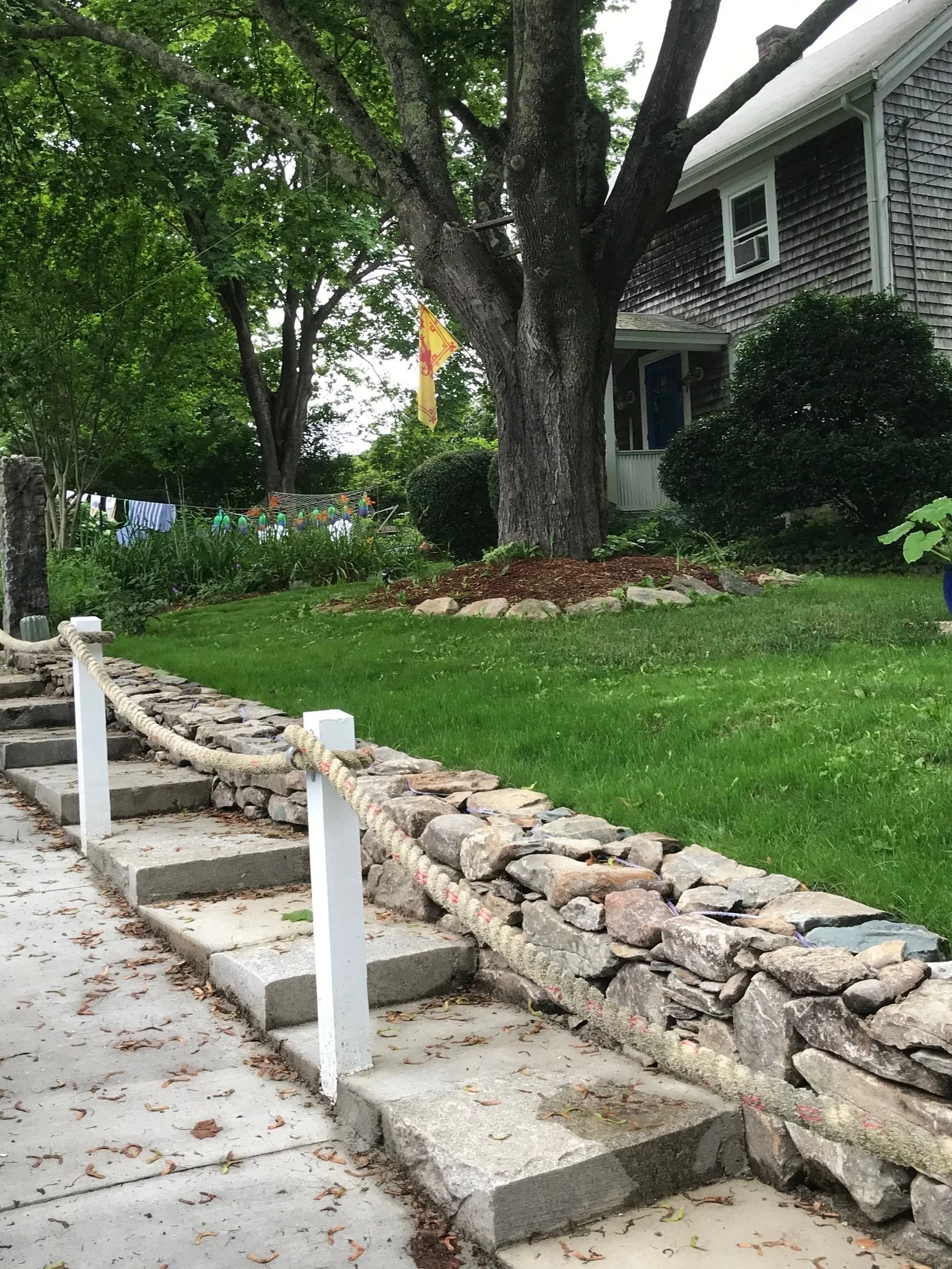 Our gardens are adorned with large pieces of stone from old New England farms. In the northwest corner, there is a sunken Celtic outdoor firepit that brings warmth, light, and laughter to an otherwise quiet and dark spot. Designed by Belle Maison, all the garden stonework was built by Portuguese craftsmen. The seating areas are defined by terraces of crushed local clamshells. Planters filled with local and exotic plants line the paths. We have a garden dedicated to wildflowers and birds, as well as one called the Turkish Delight. The path and steps that welcome visitors are made of stone, cobbles, and a reclaimed ferryboat rope serves as a handrail.